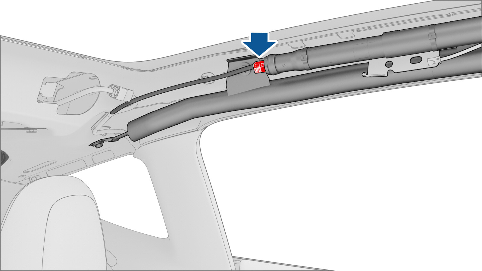 断开约束控制模块、传感器和气囊等辅助约束系统 (SRS) 部件的电气线束之前,确保 12V/低压电源已断开至少 1 分钟,否则可能导致意外的安全系统行为。有关辅助约束系统 (SRS) 注意事项的更多信息,请参阅气囊和辅助约束系统 (SRS) 预防措施。