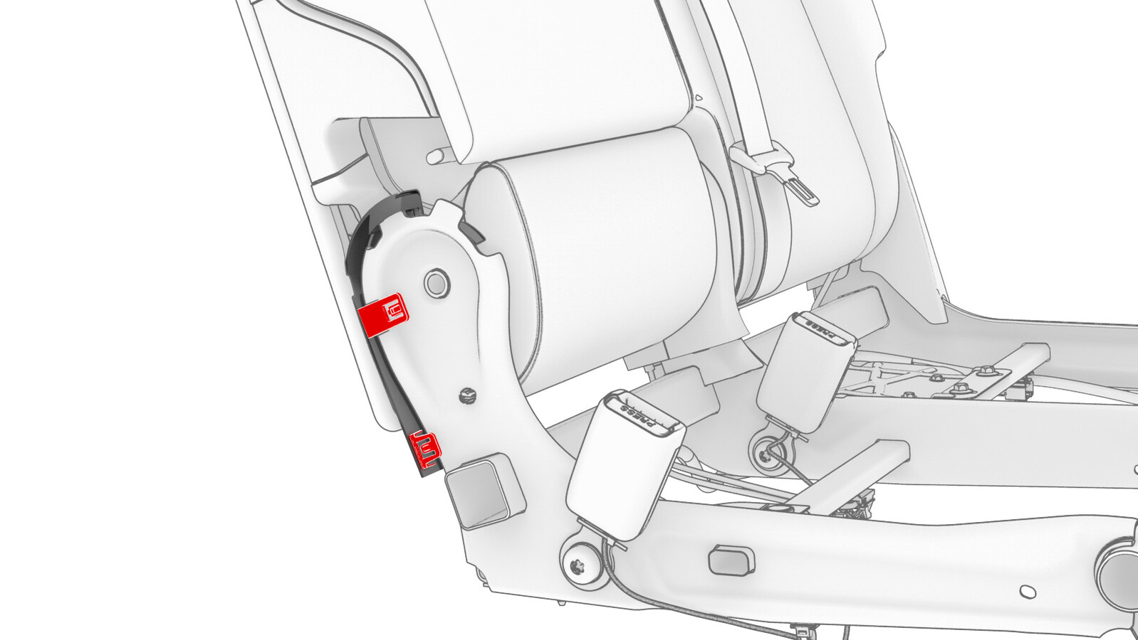 - 松开将 LH 内侧第二排 B 柱盖板固定在座椅上的夹子,然后向前拉动饰板,将其从座椅骨架上拆下。