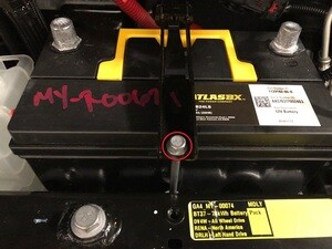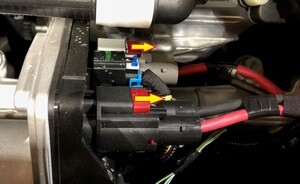 注1 个螺母,10 毫米,6 Nm,1 个连接器;接合锁片,首先连接紧急响应回路,然后再连接 12V 负极端子,以免损坏车载电脑