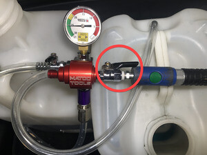 - 将车间用供气装置从冷却液重新加注工具上断开