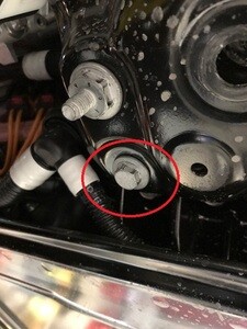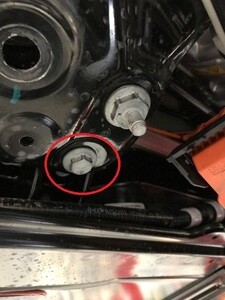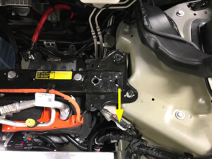 拆下将 12V 电池上部系紧带固定到空调压缩机支架的螺栓