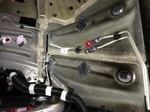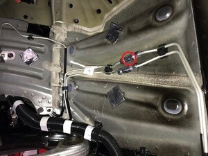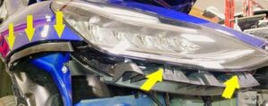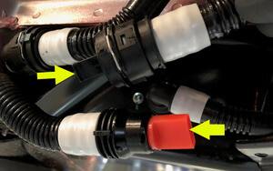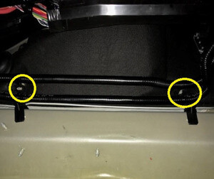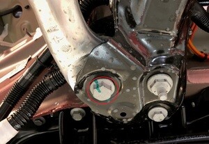 注5 个螺栓,10 毫米,5 Nm;新款车可能加装了 1 个将前备箱固定到清洗器储液罐颈部的推拉式卡子