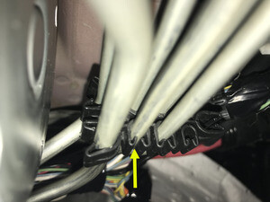 注提起电池系紧带,然后将其从后部系紧带挂钩上拆下