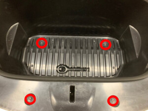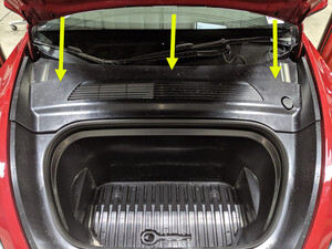 注5 个螺栓,10 毫米,5 Nm;新款车可能加装了 1 个将前备箱固定到储液罐颈部的推拉式卡子