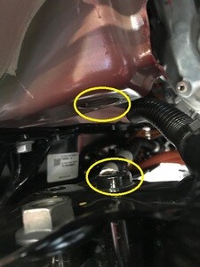 拆下将高压电池仓探针盖固定到高压电池仓盖板的螺栓。