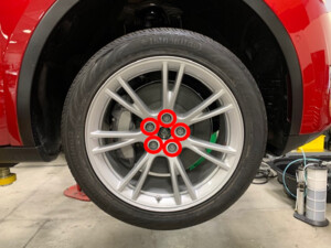 注确保车辆在升离地面前未处于充电状态,将空气悬架设置为“千斤顶模式”(如有配备)