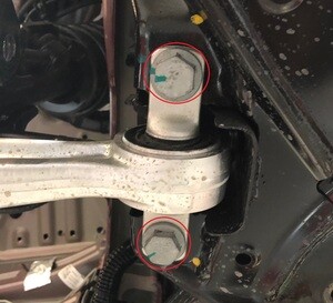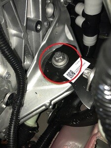 注2 个螺栓,15 毫米,67 Nm;1 个螺栓,15 毫米,62 Nm;请参阅图片了解扭矩位置