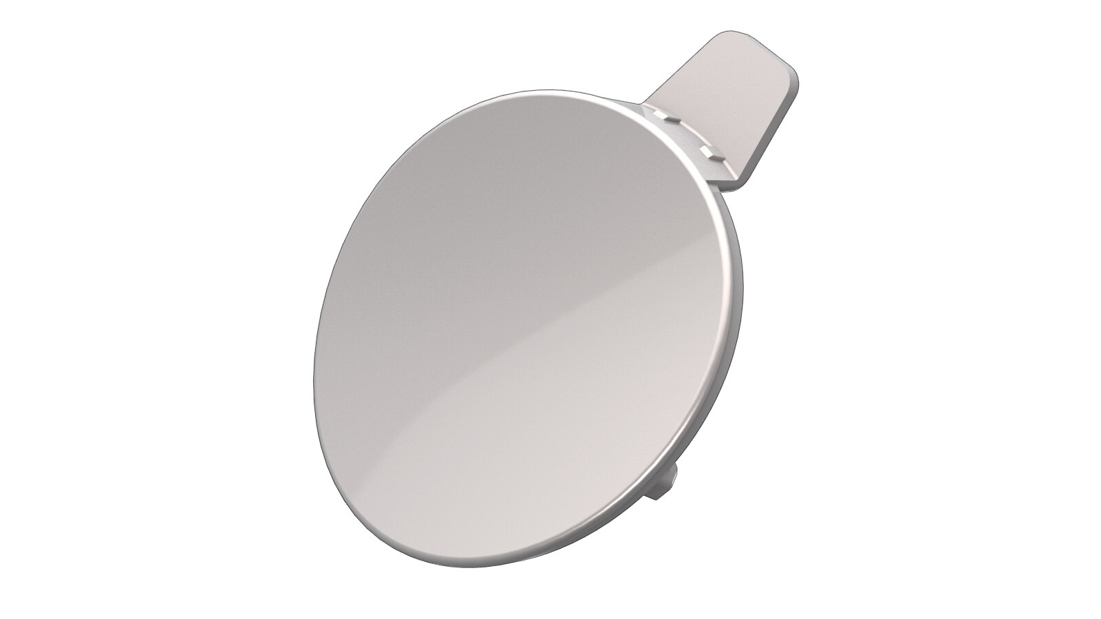 在 1 点钟和 2 点钟位置之间插入定位锁片,然后转动底部,将锁片滑入饰板的卡槽中。锁片入位后,按压外边缘,将盖板盖好。