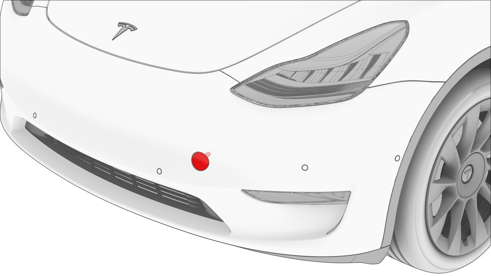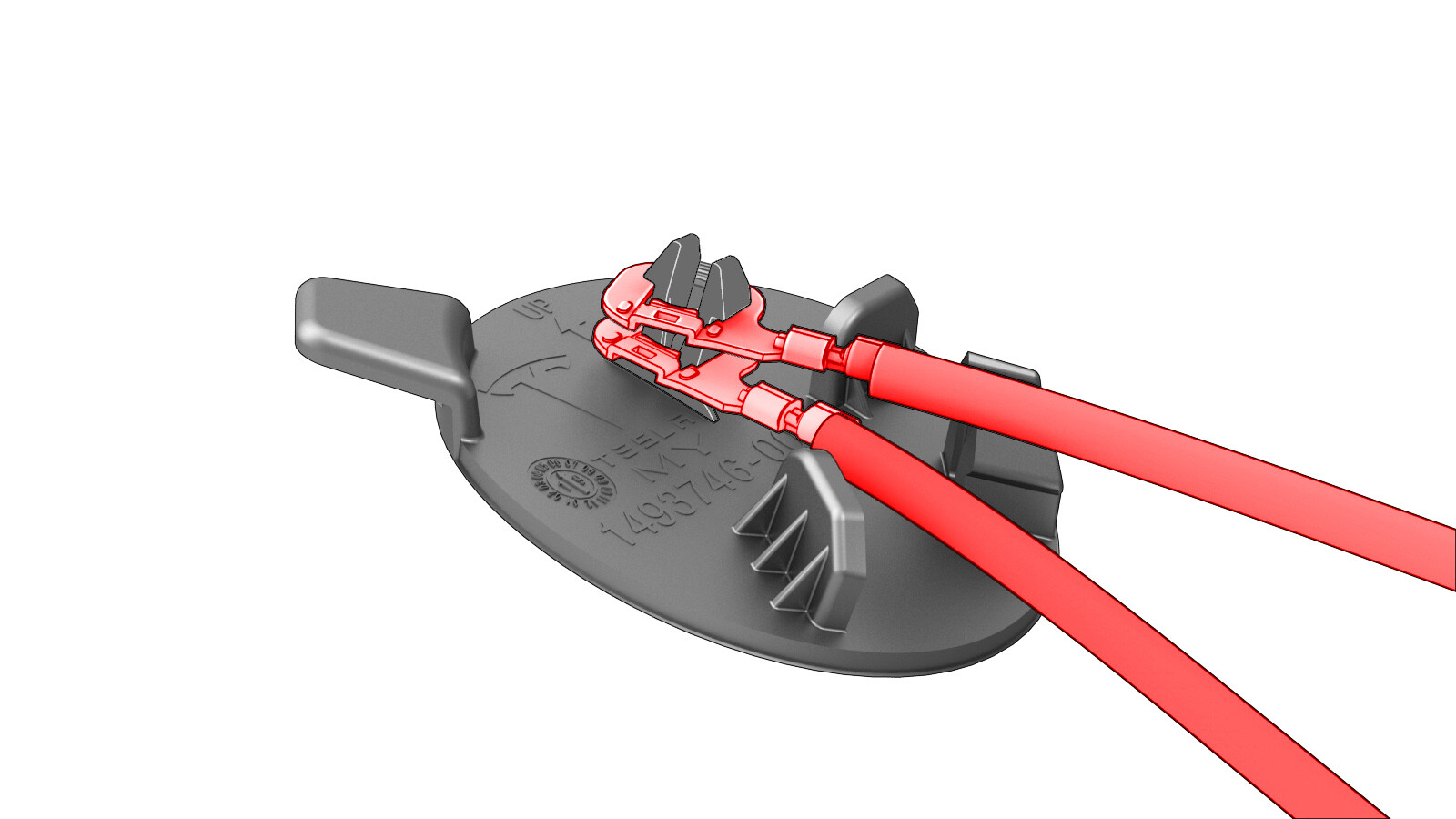 两个拇指放在 1 点钟和 2 点钟位置,关节放在保险杠饰板表面,以支撑手的位置。使用两个拇指,对盖板的外边缘用力。