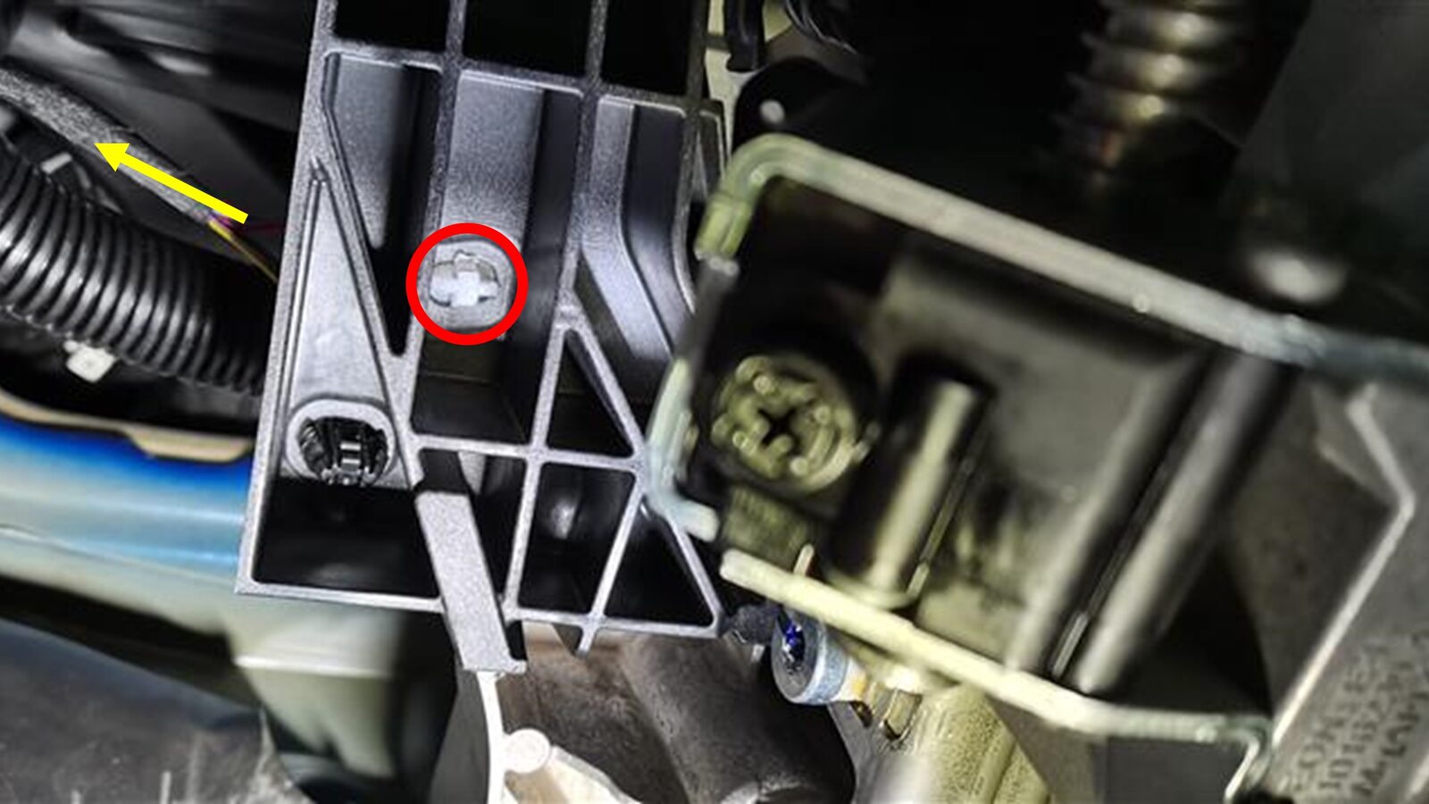 - 将仪表板线束夹从仪表板支架上松开,然后将线束朝车辆左侧拉动。