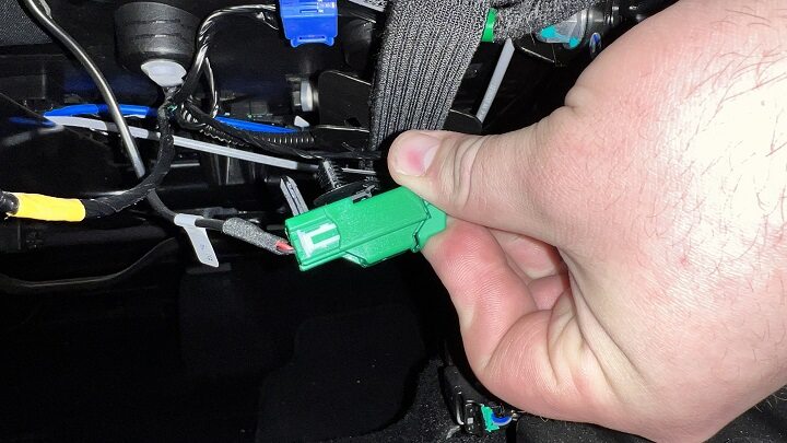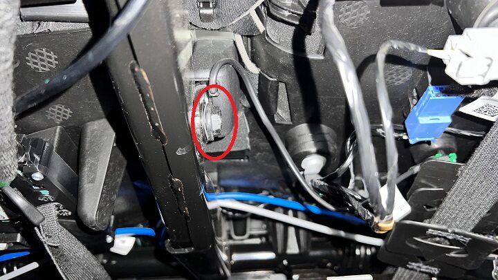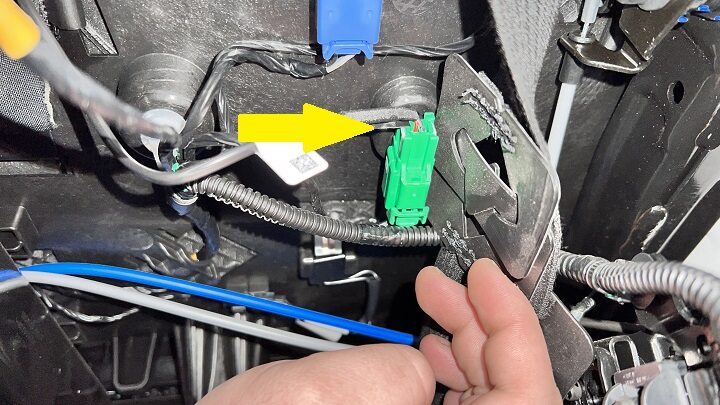 - Disconnect LH 2nd row buckle connector, and then release the clip that attaches the connect to the vehicle.