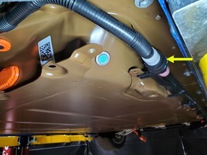 - 在高压电池右前侧下方放置一个冷却液排放容器。