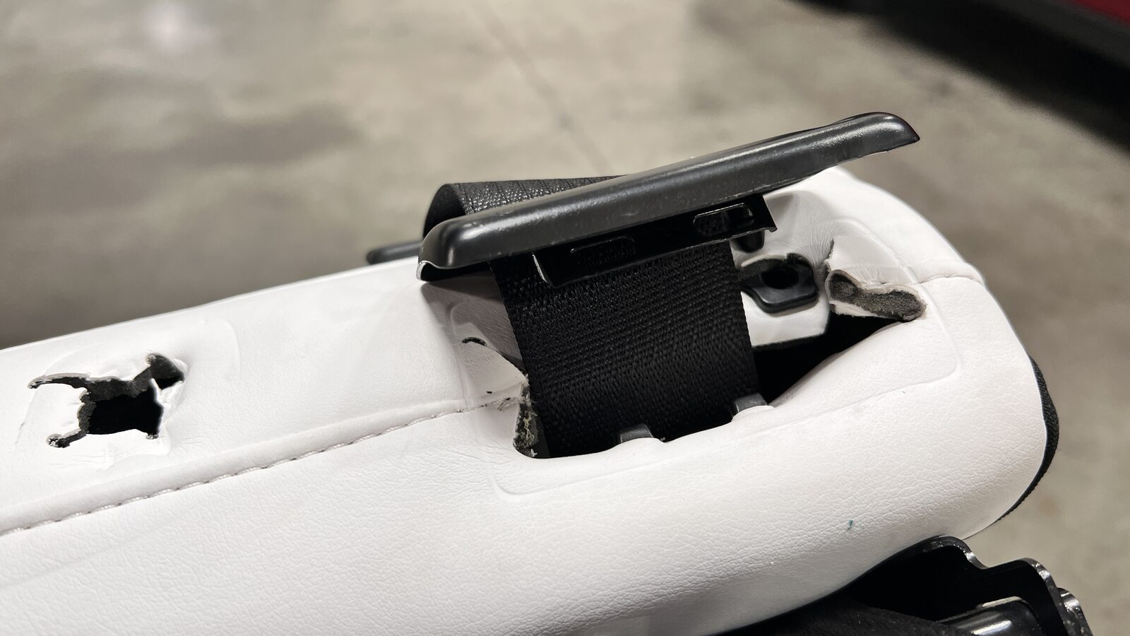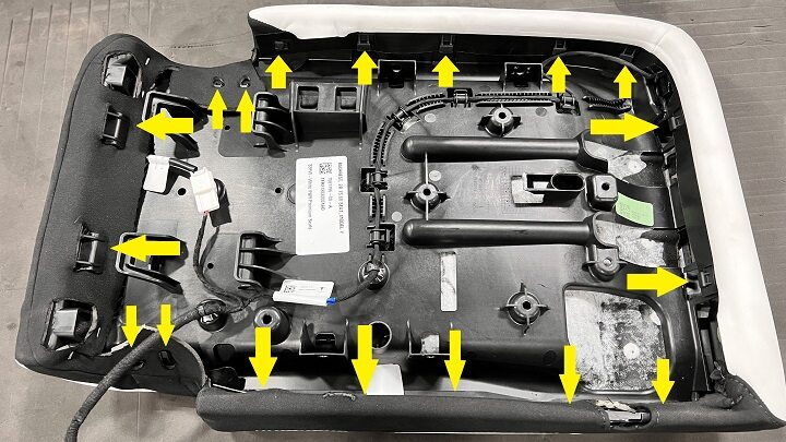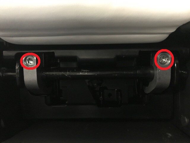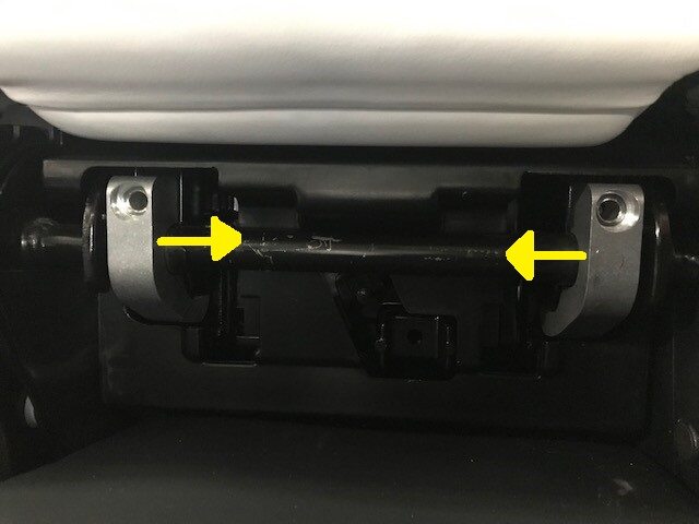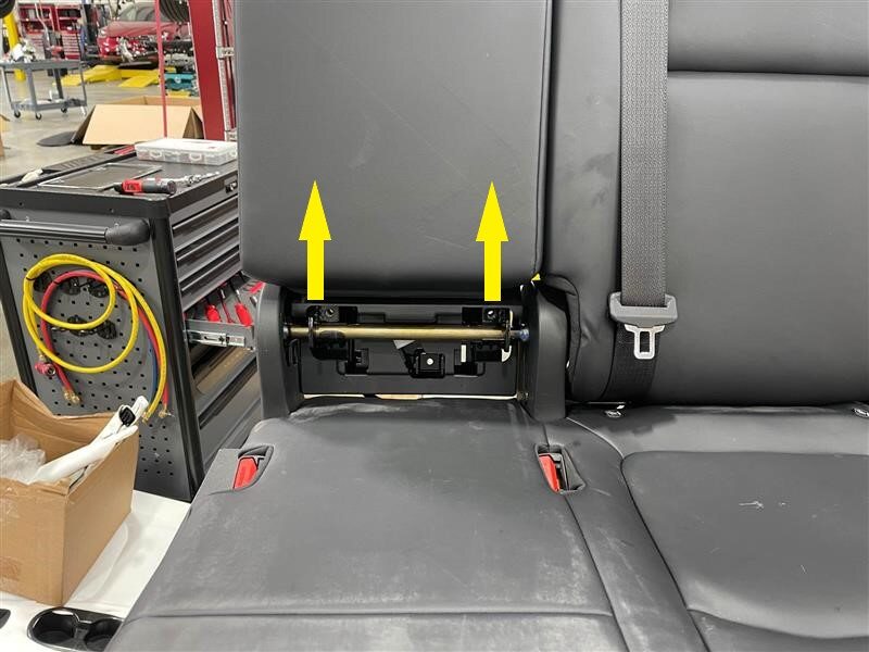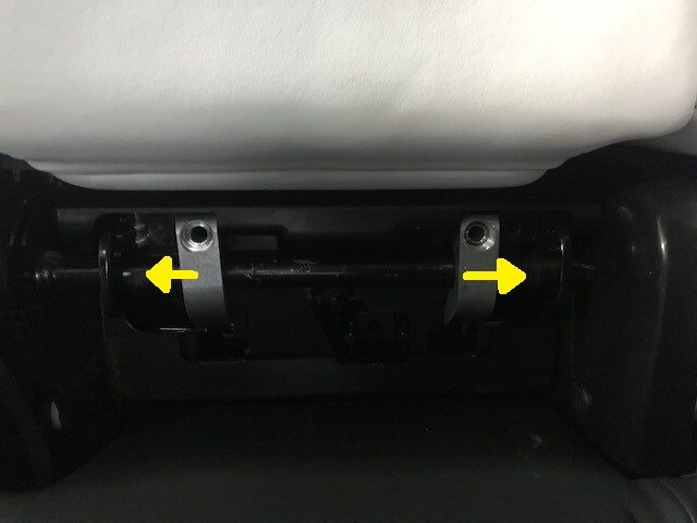 注2x bolts, T40, 22 Nm, Once fasteners are removed slide pivot clamp towards the center of center seatback and pull each outwards to remove
