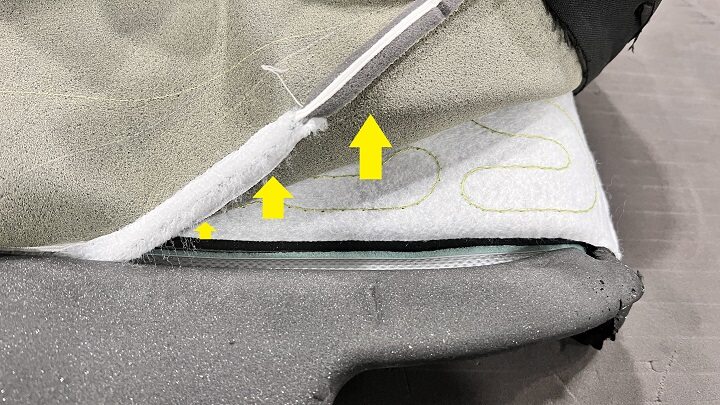 注仅适用于北美车辆:必须更换不带童锁 ISOFIX 标签的座椅罩。注3x hogring, Hook & loop attachment around perimeter, Cut hogrings, clean debris