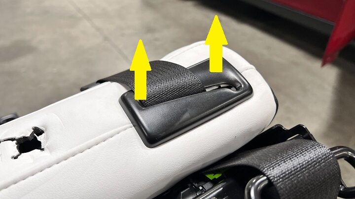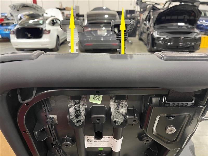 注Pull back on lower portion of the headrest guide to release tab while also applying upward force to remove headrest guides