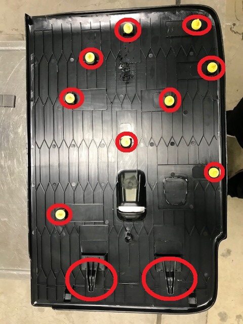 注9x clips, 2x hooks, Release clips starting at the top of back panel working your way down the lower back panel, pull 60 back panel towards front of vehicle to remove