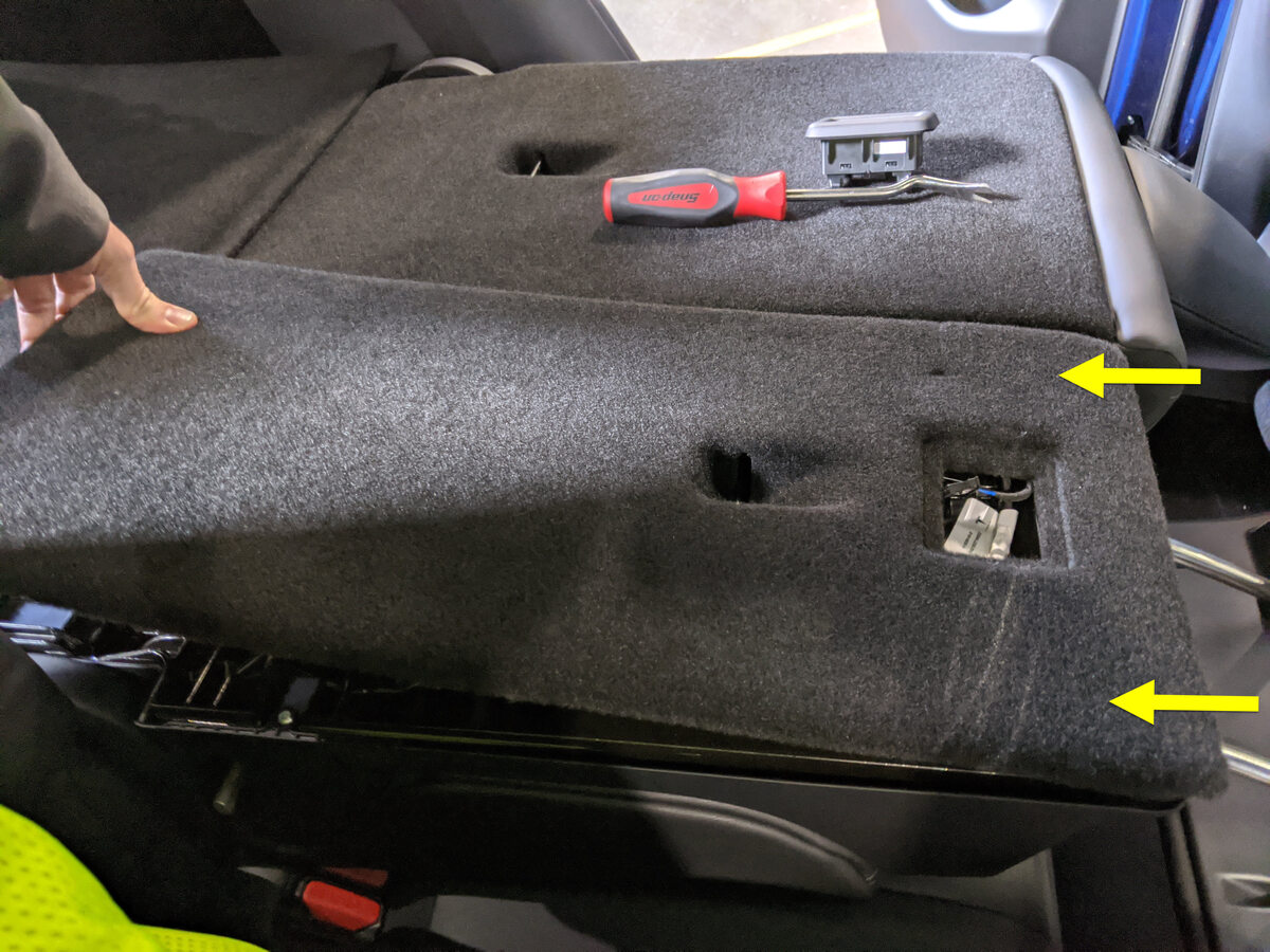 注2x clips, Slide covers forward to release from 2nd row seat tracks