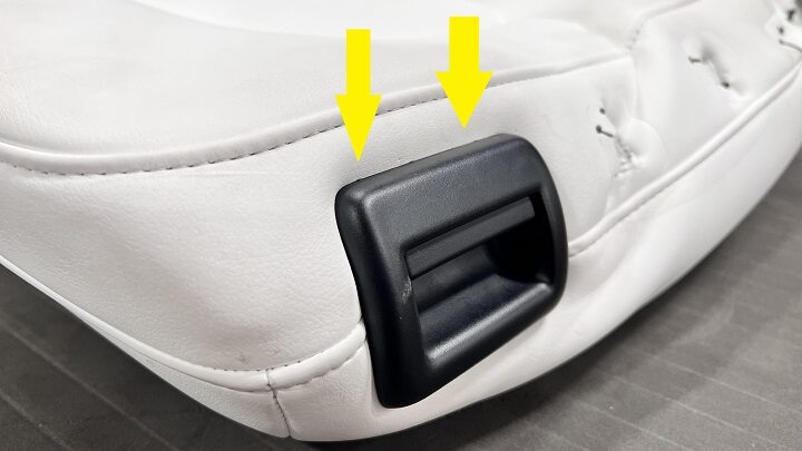 注Remove seat bottom by lifting the rear first and removing it towards front of the seat