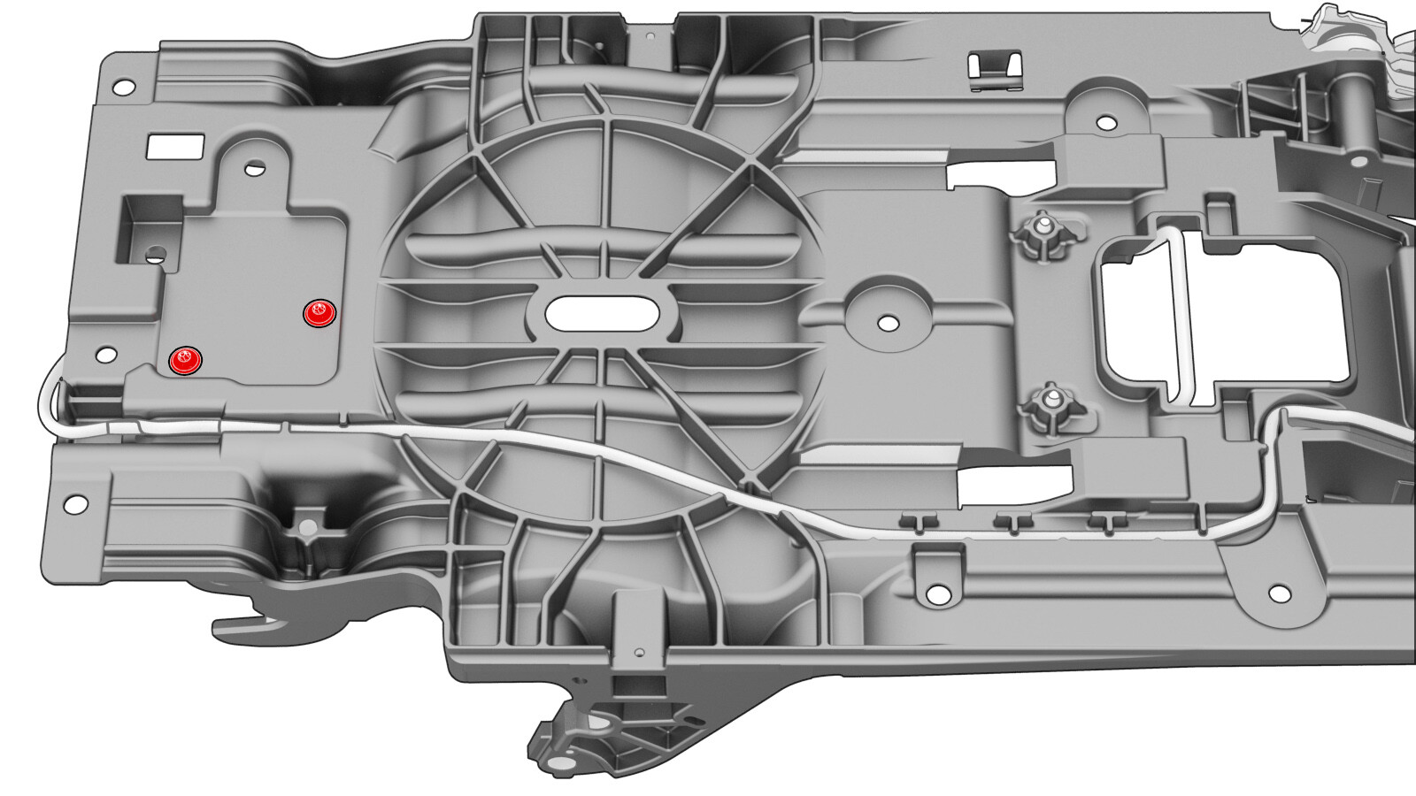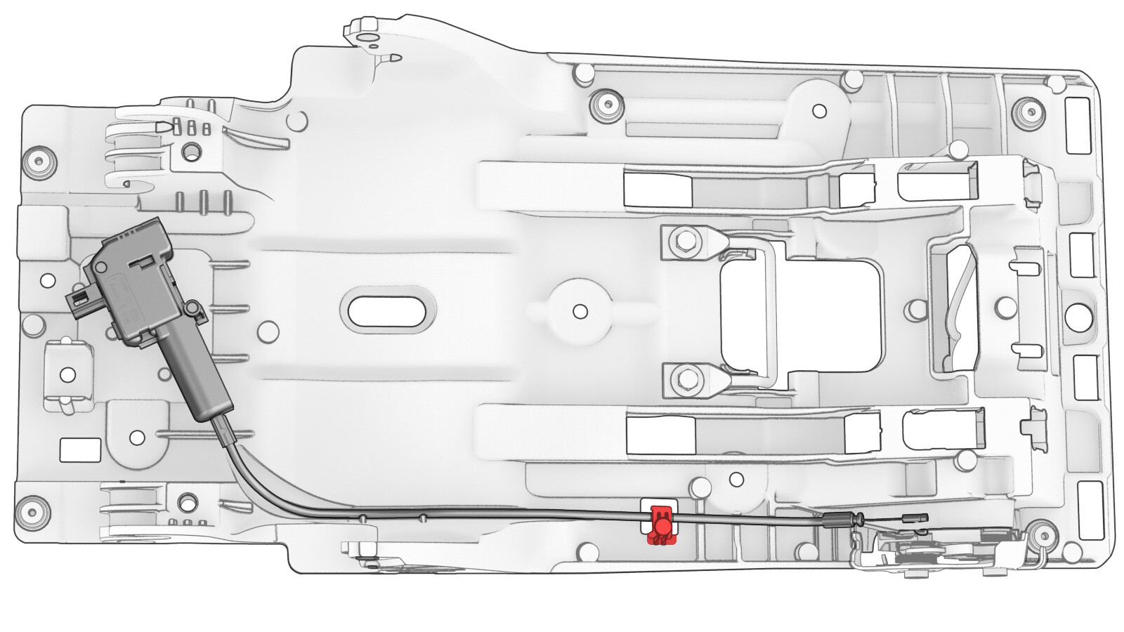 - 松开将第二排中间闩锁执行机构缆索固定到座椅靠背封闭板的夹子 (x2)。