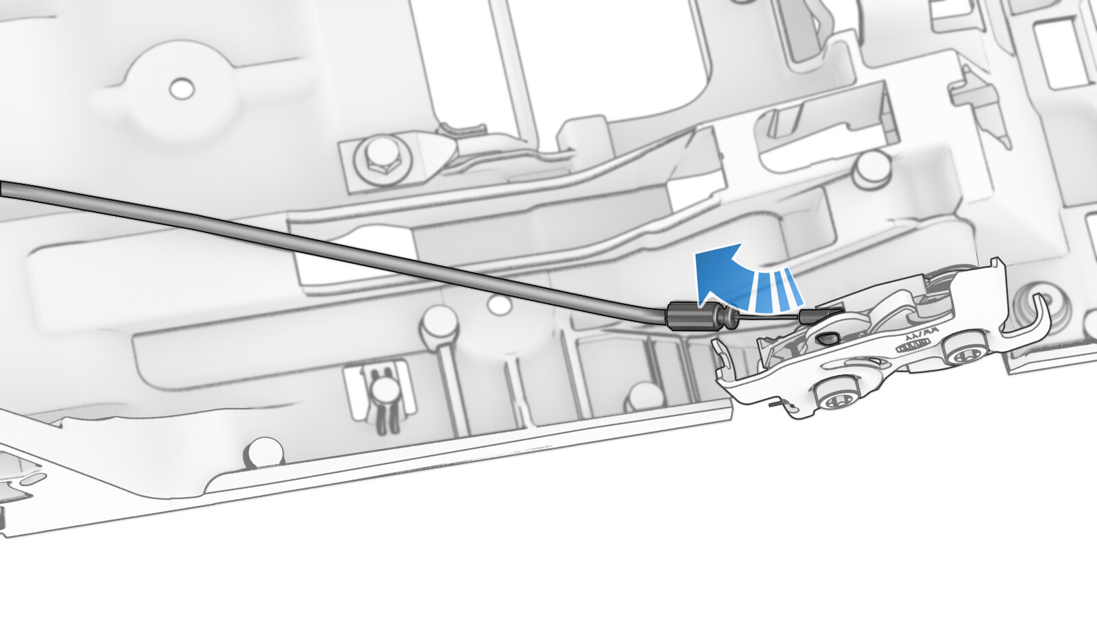 - 提起第二排中间闩锁执行机构缆索,然后从闩锁拉出以便将其松开。