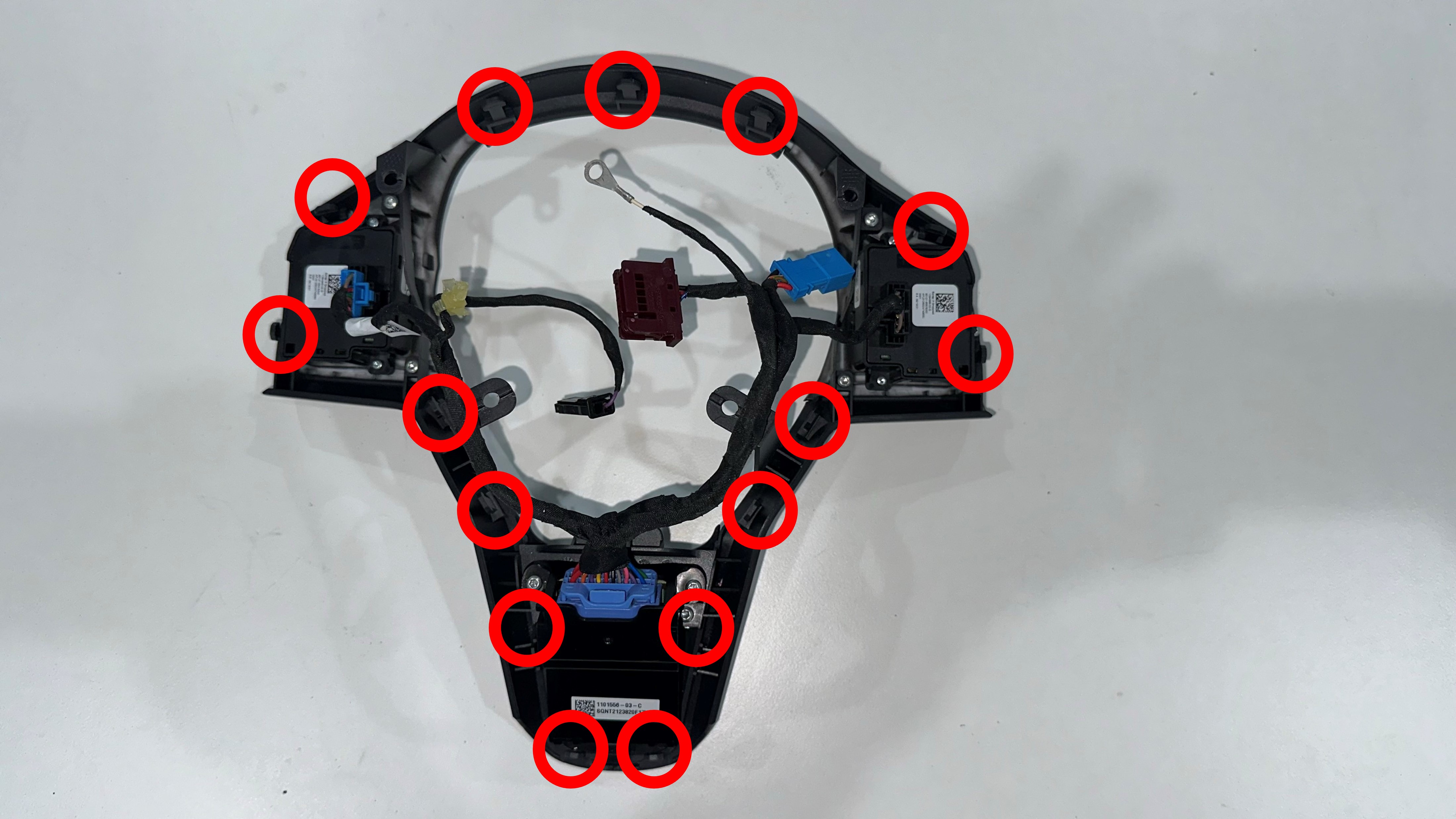 - 安装将方向盘周边亮条固定到方向盘轮圈的卡子。