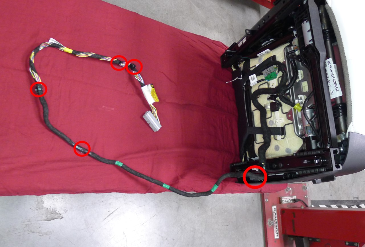 - 拆下旧左前座椅线束上的夹子(5 个)。