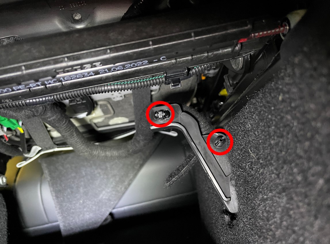 安装将左前座椅线束固定到左侧脚部空间支架(位于左侧脚部空间左端附近)的夹子(2 个)。