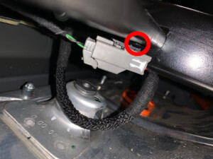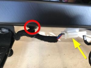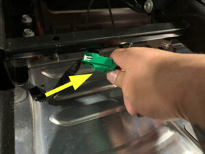 - 从第二排 LH 座椅框架上松开固定第二排 LH 锁扣电气连接器的夹子。