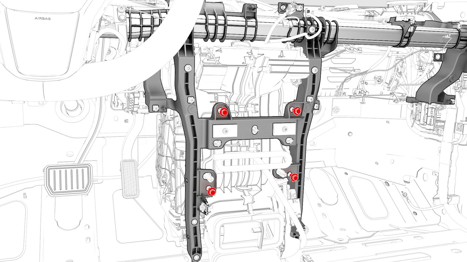 - 预装将横梁固定到暖通空调总成的螺栓。