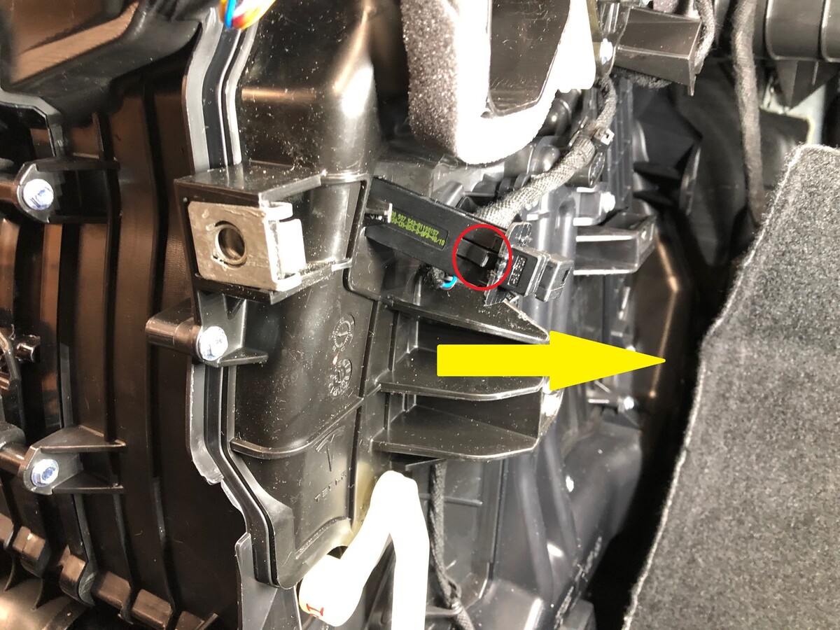 - 将 RH 上部导管热敏电阻安装到暖通空调总成中。
