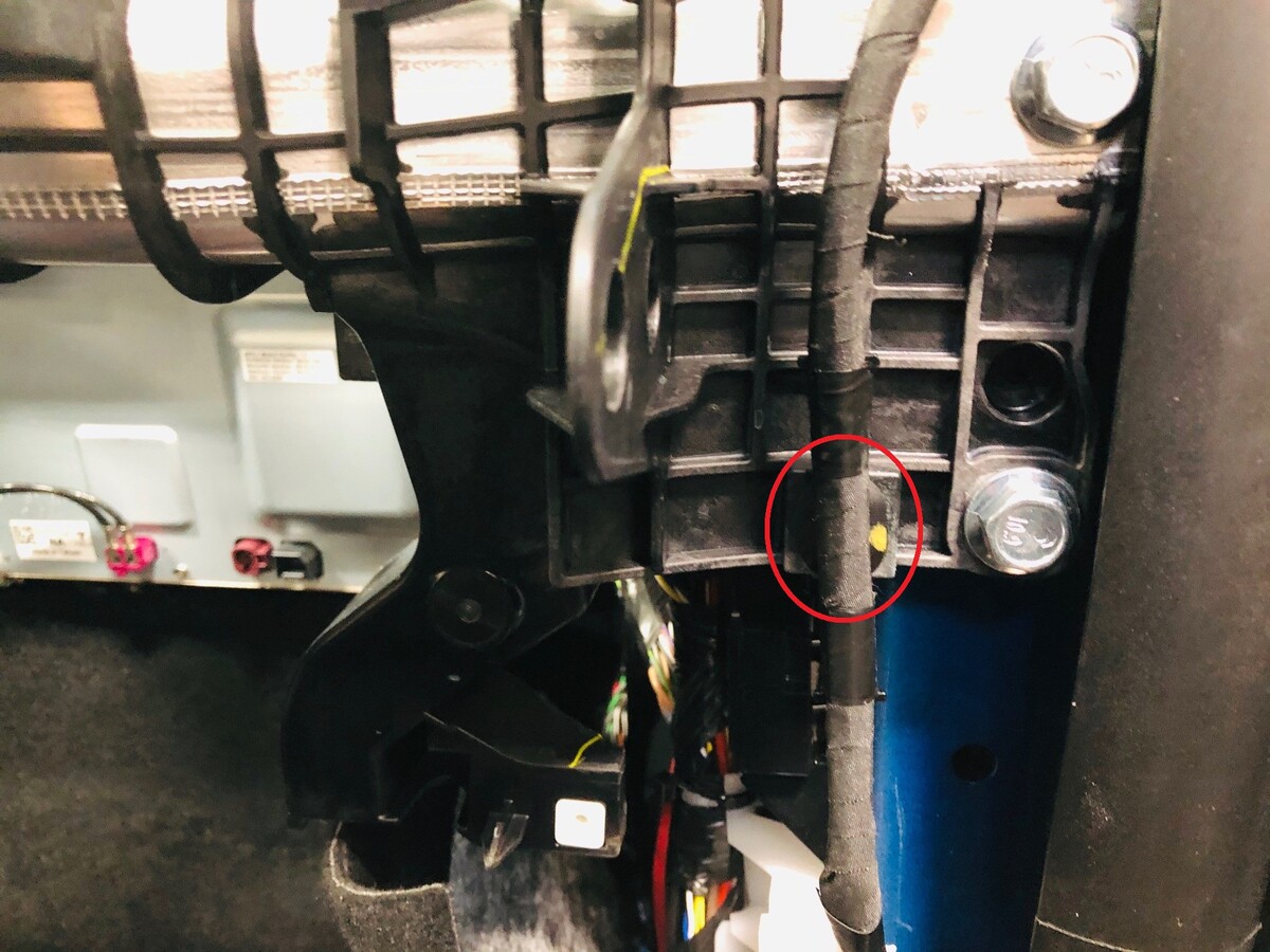 - 在 A 柱 LH 下部松开将顶蓬电气线束固定到车辆的夹子。