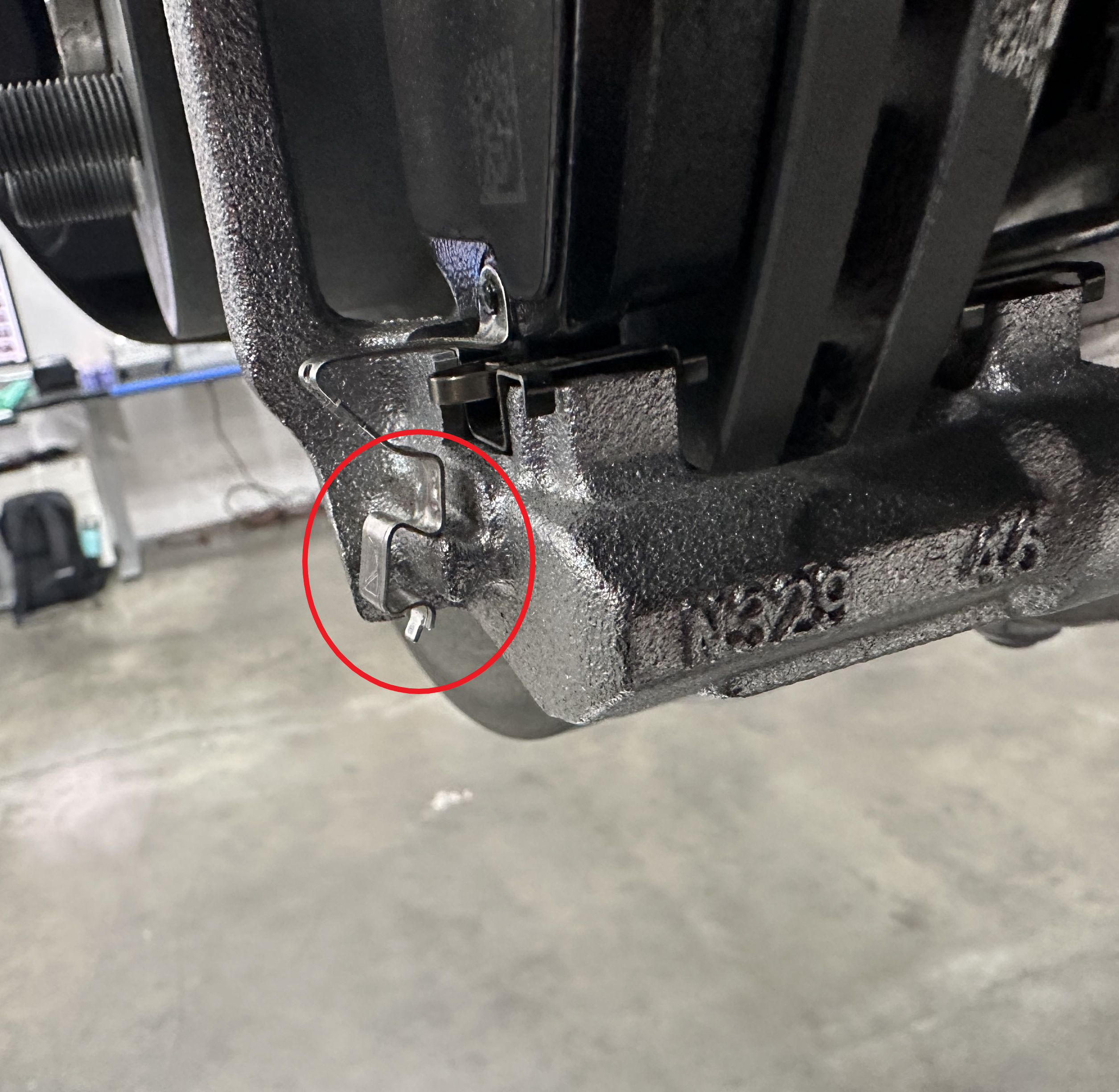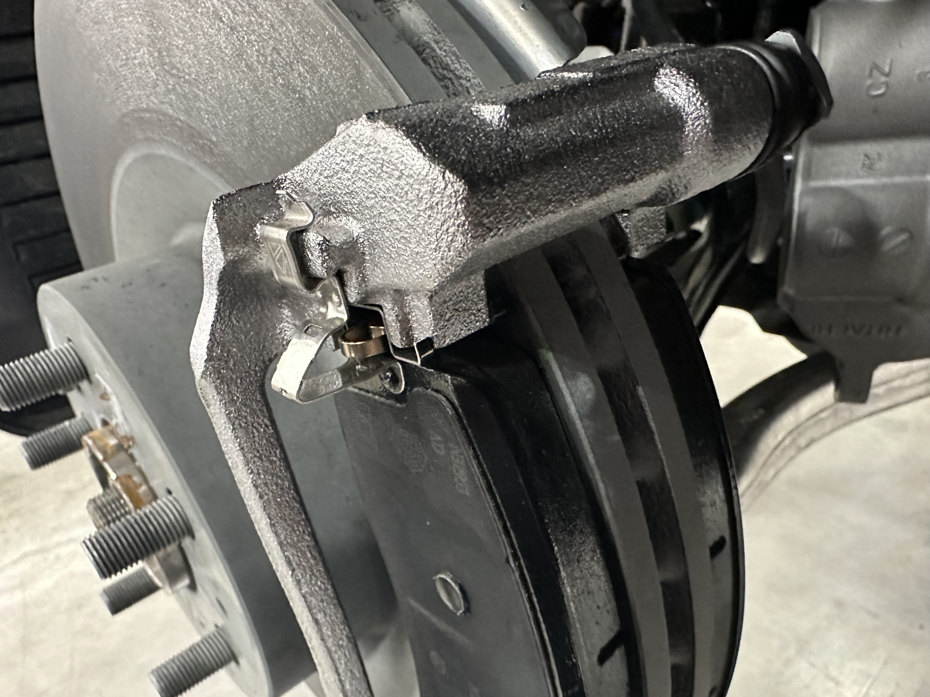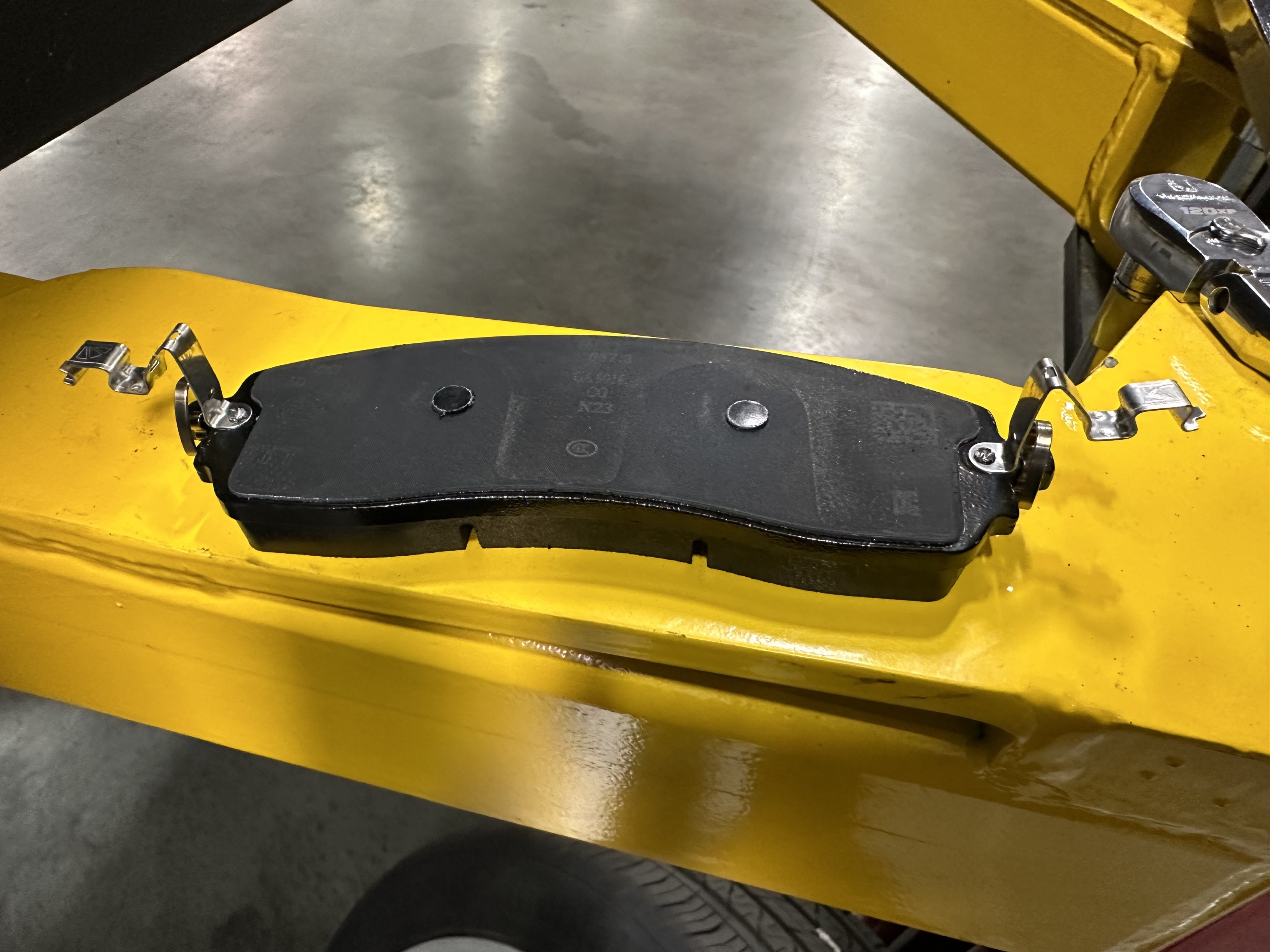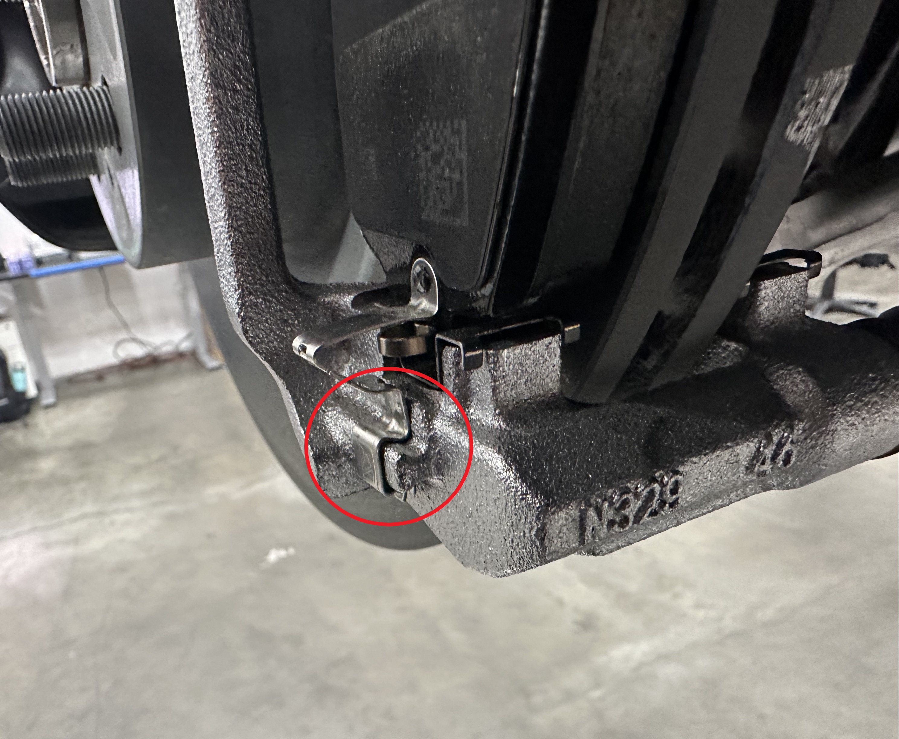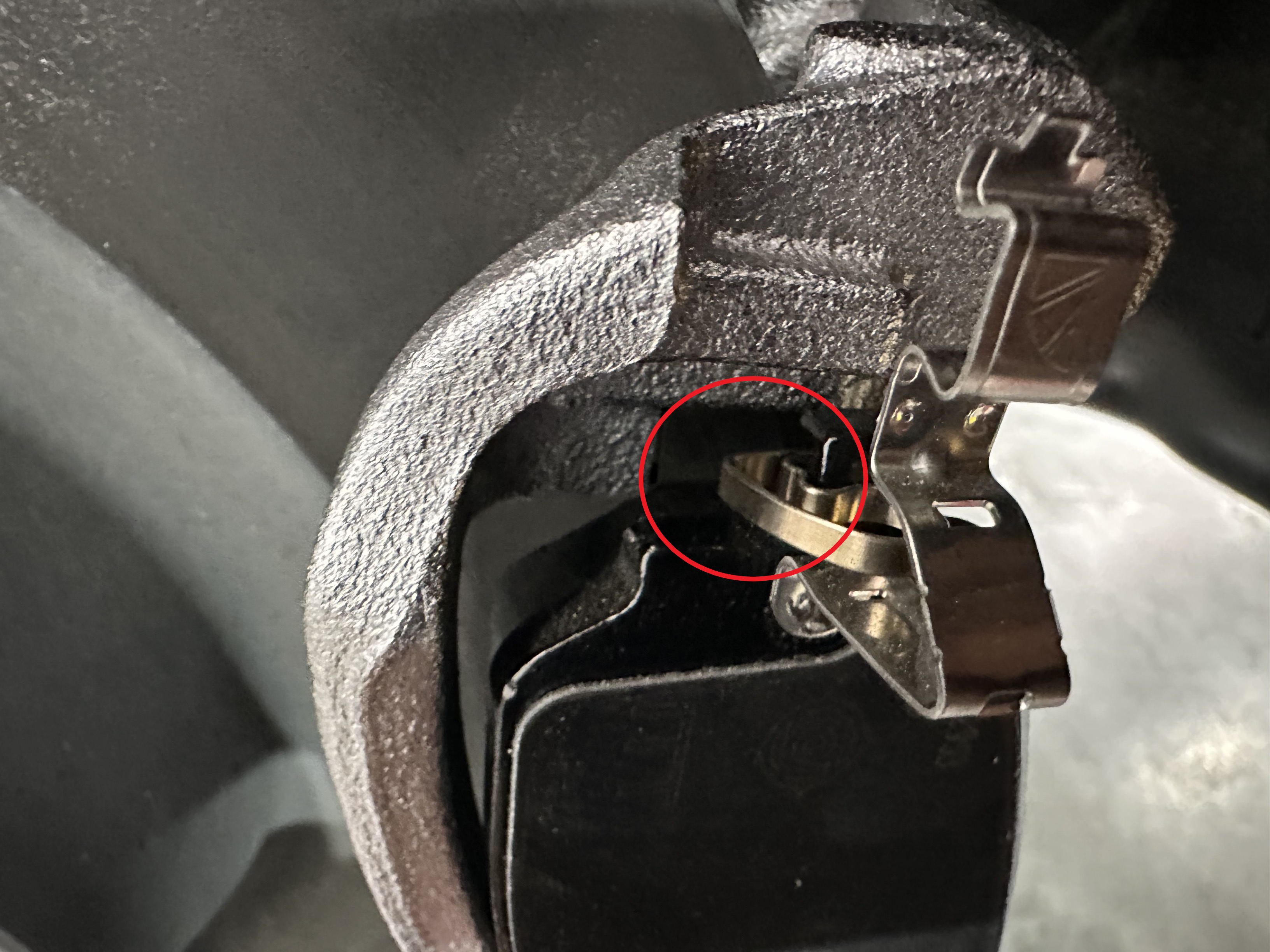 提示: 朝防震弹簧推动制动片,然后将制动片滑至固定销上。