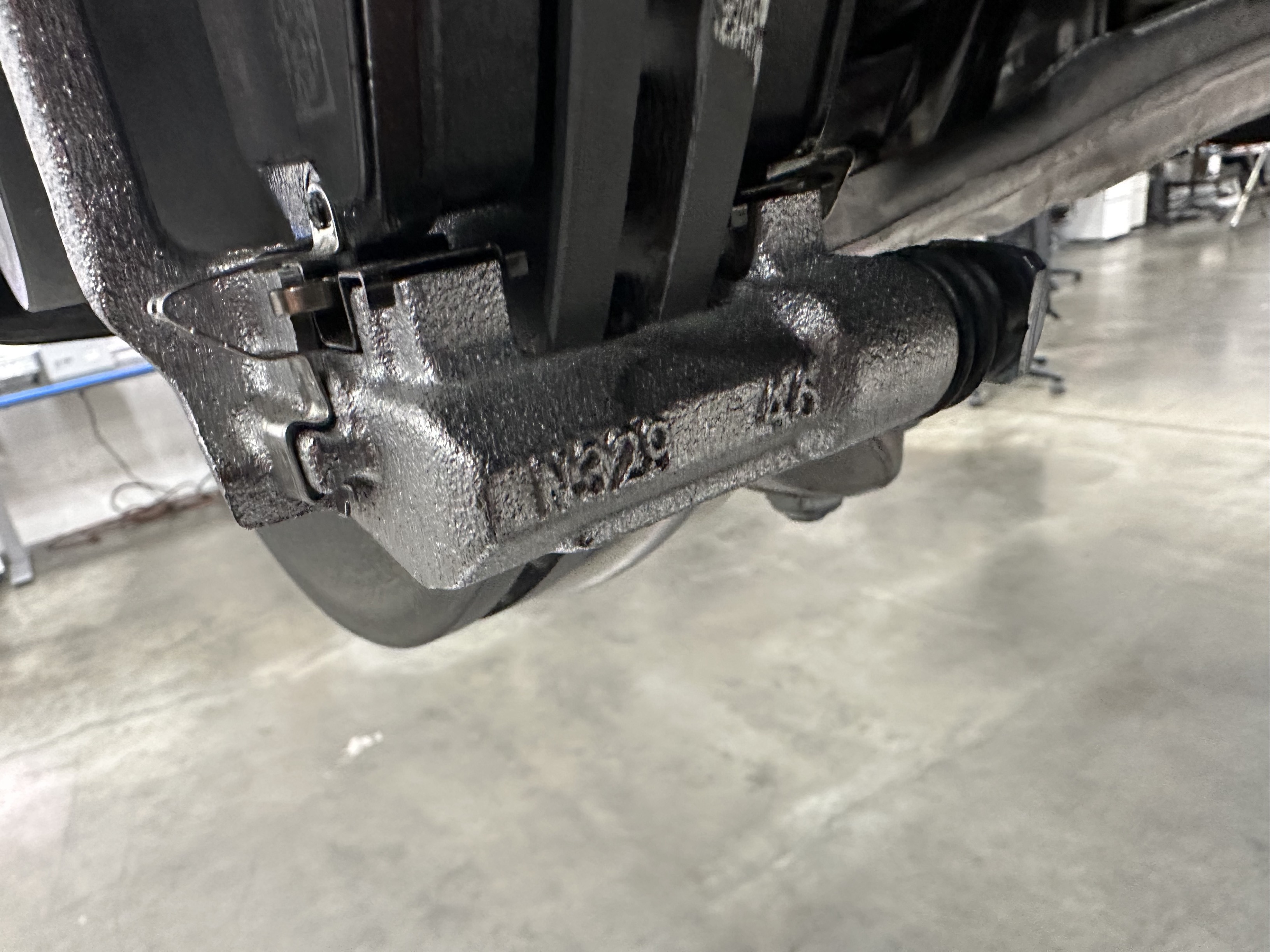 - 拆卸并弃置将左前制动钳固定到左前转向节的螺栓。