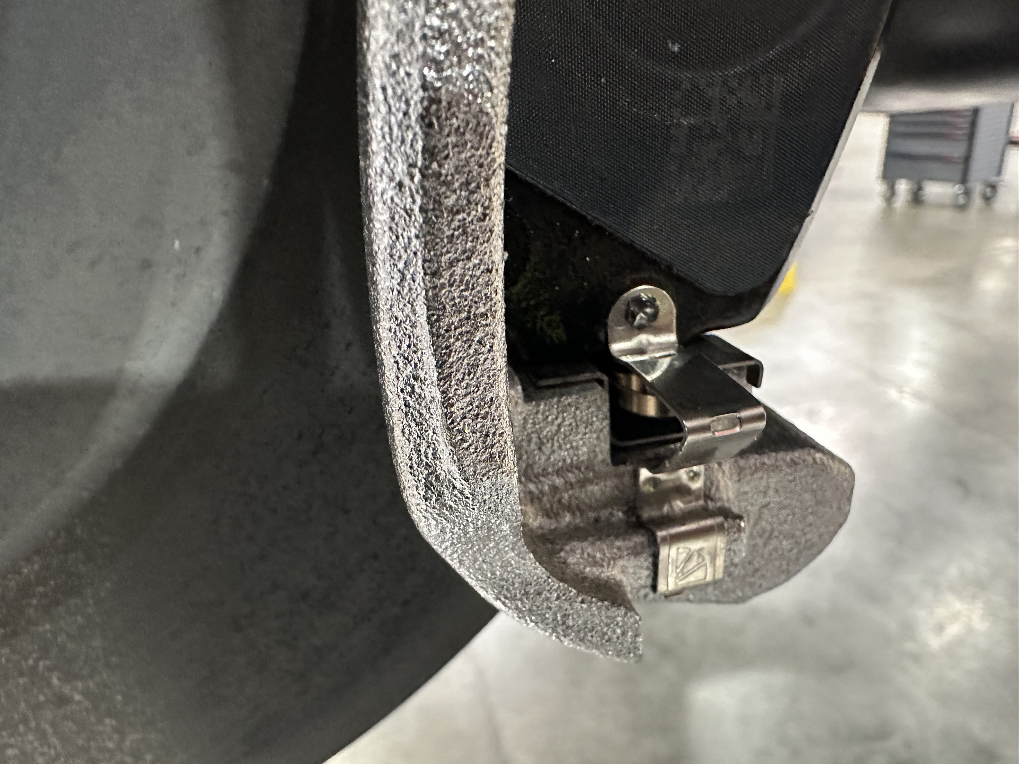 - 使用制动钳 S 型挂钩将左前卡钳挂在车身上。