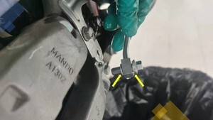 注1 个螺栓,11 毫米,42 Nm,2 个铜垫圈,安装新螺栓和 2 个新垫圈;垫圈必须放置在制动管路的每一侧;请勿双层堆叠垫圈;在扭矩检查后用油性记号笔标记螺栓