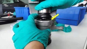 注插入阶段,活塞必须与活塞座同轴,否则可能会损坏垫片;将活塞均匀压入制动钳内,调整至活塞安装位置;检查防尘罩是否安装到位