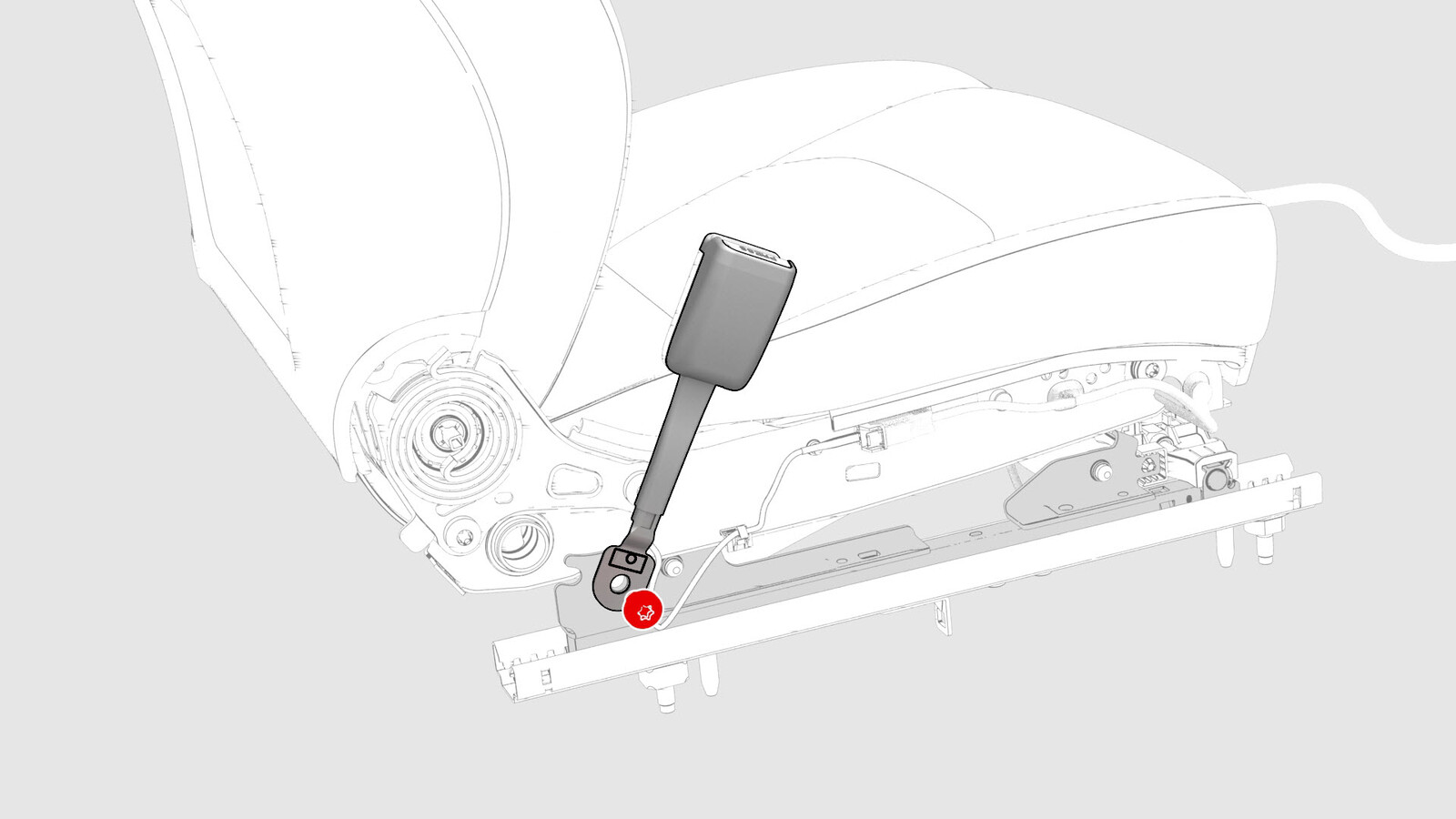 - 将座椅升至其最高位置,同时用手电筒检查座椅安全带锁扣线束,确保不会刮蹭任何部位。