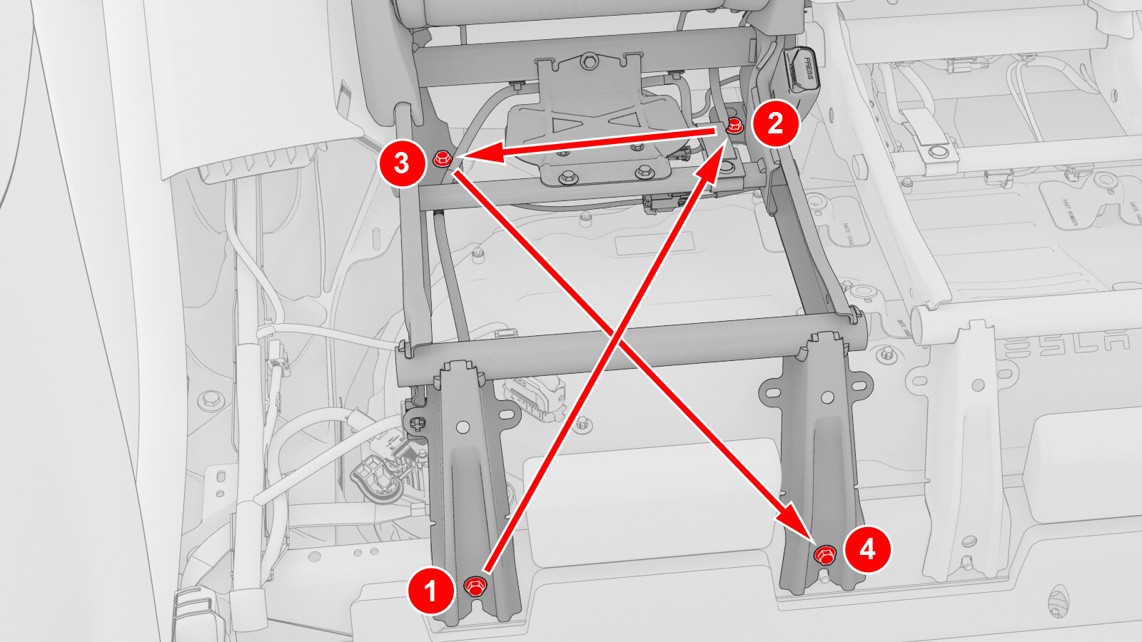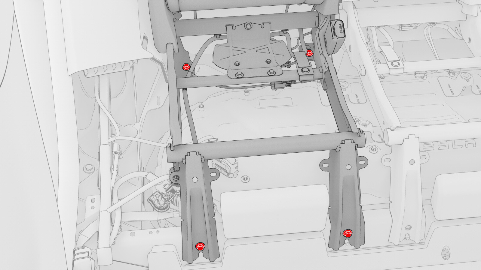 拆下将第二排右侧座椅靠背框架固定到车辆的螺栓(4 个)。