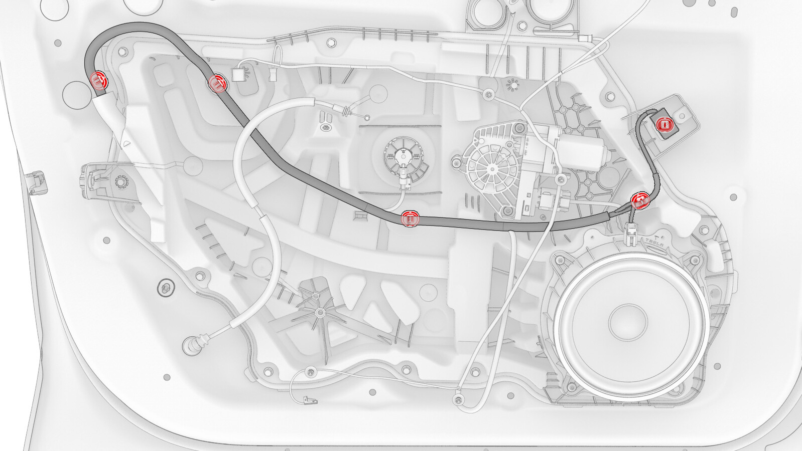 - 断开电气线束与 LH 前车门扬声器之间的连接。