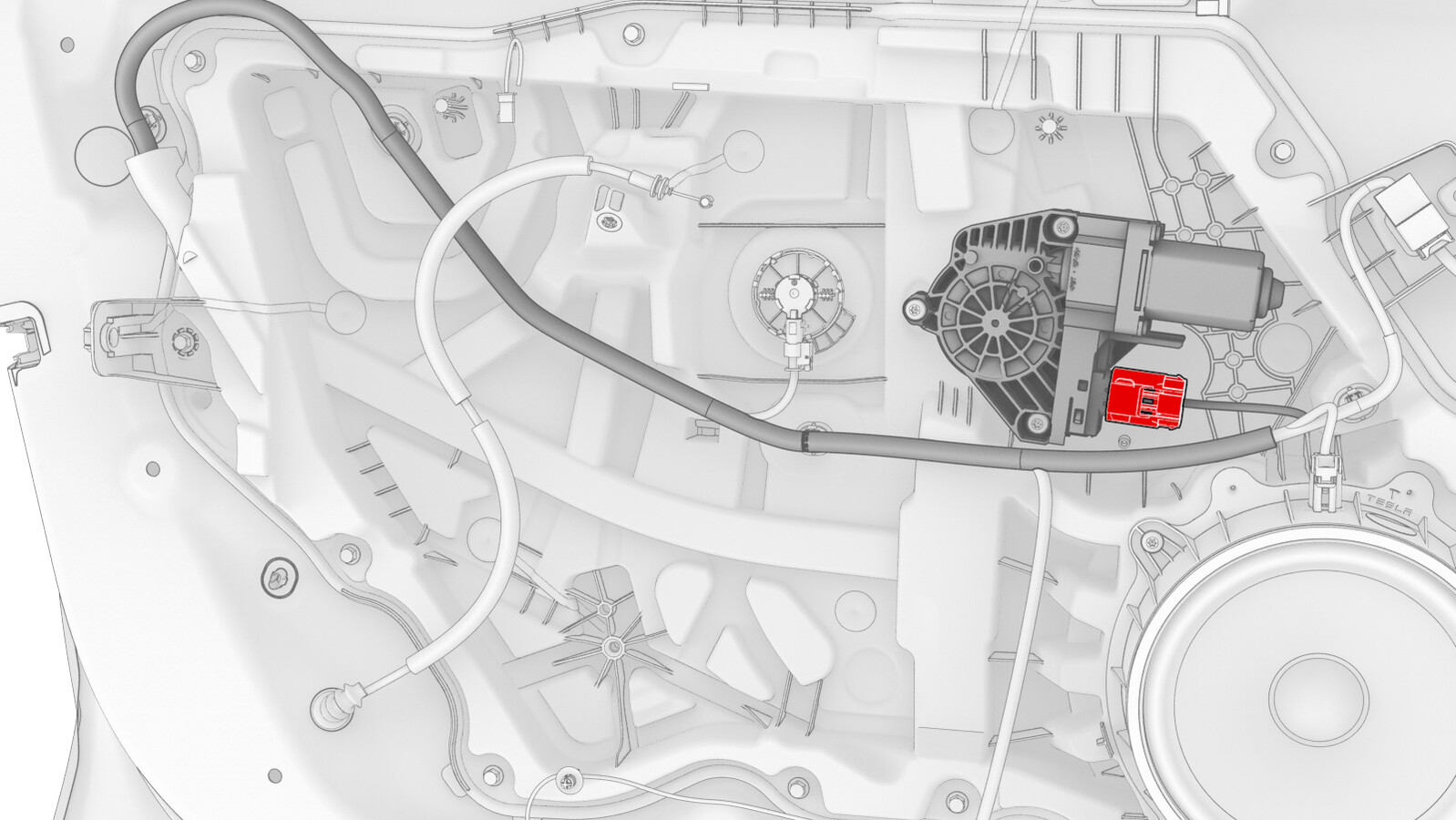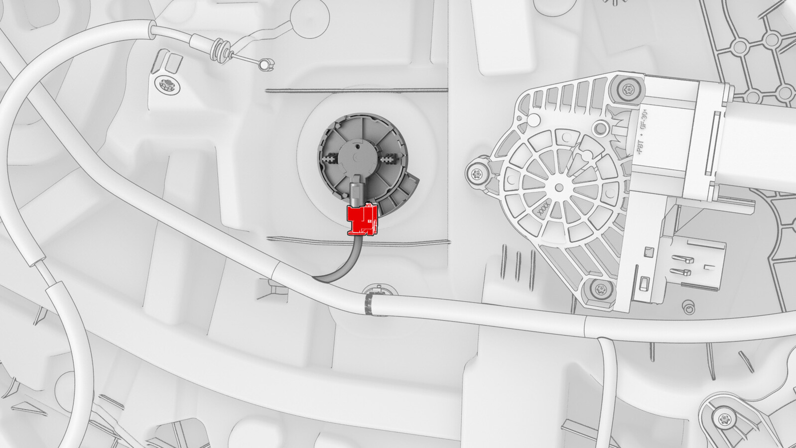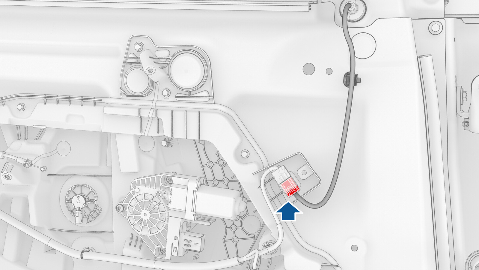 - 松开连接器锁,然后断开电气线束与 LH 前车窗电机连接器之间的连接。