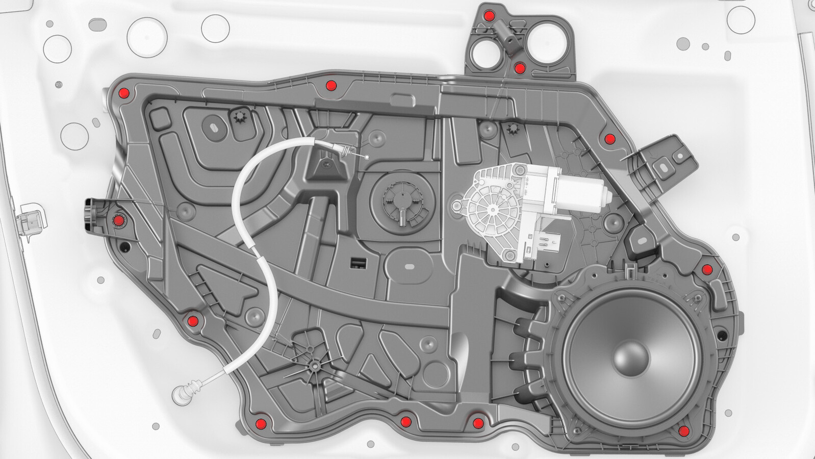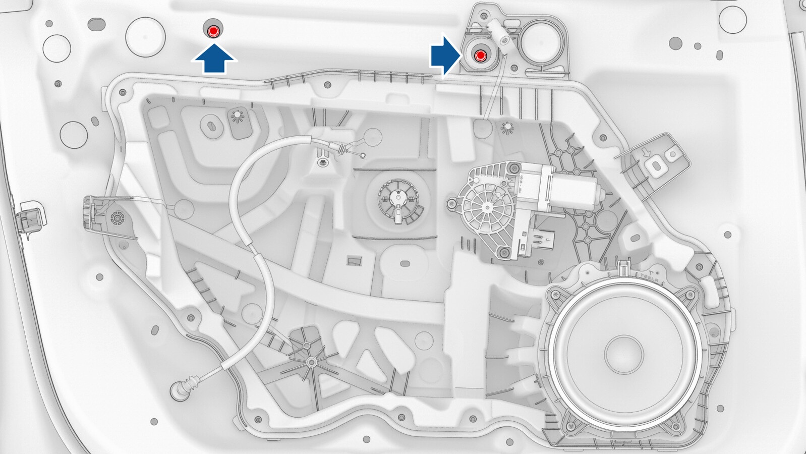 - 拆下 LH 前车门玻璃。请参阅玻璃 - 车门 - LH - 前(拆卸和更换)。