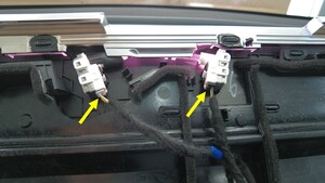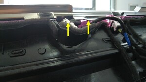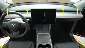 安装用于固定仪表板主饰板的连接器(2 个)、卡子(7 个)、线束固定支架(3 个)和魔术胶带(6 个),然后将饰板安装到仪表板上。