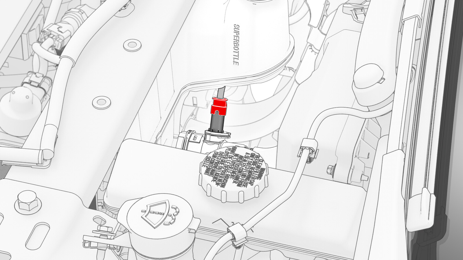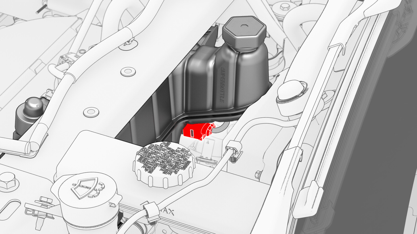 - 将电气线束连接到超级瓶液位传感器连接器。