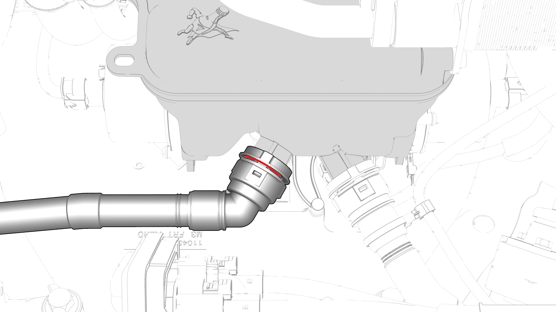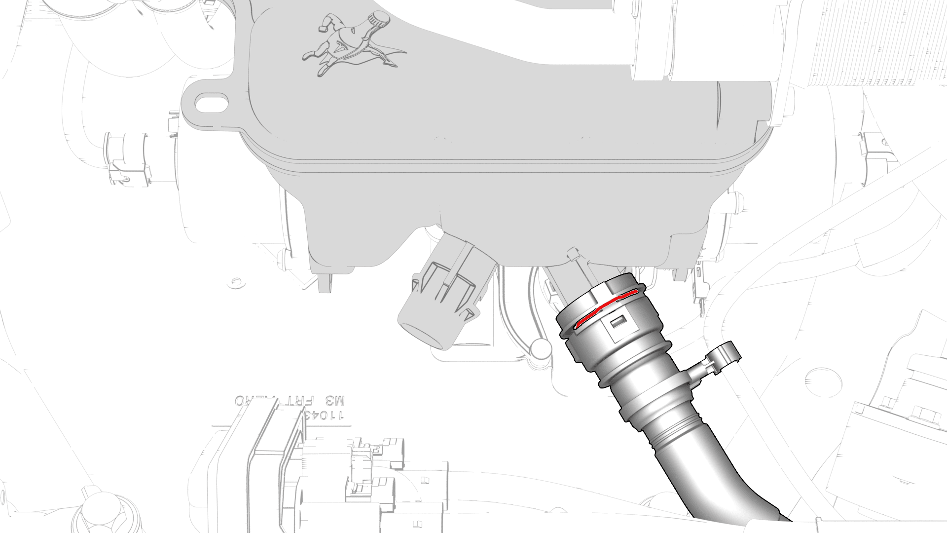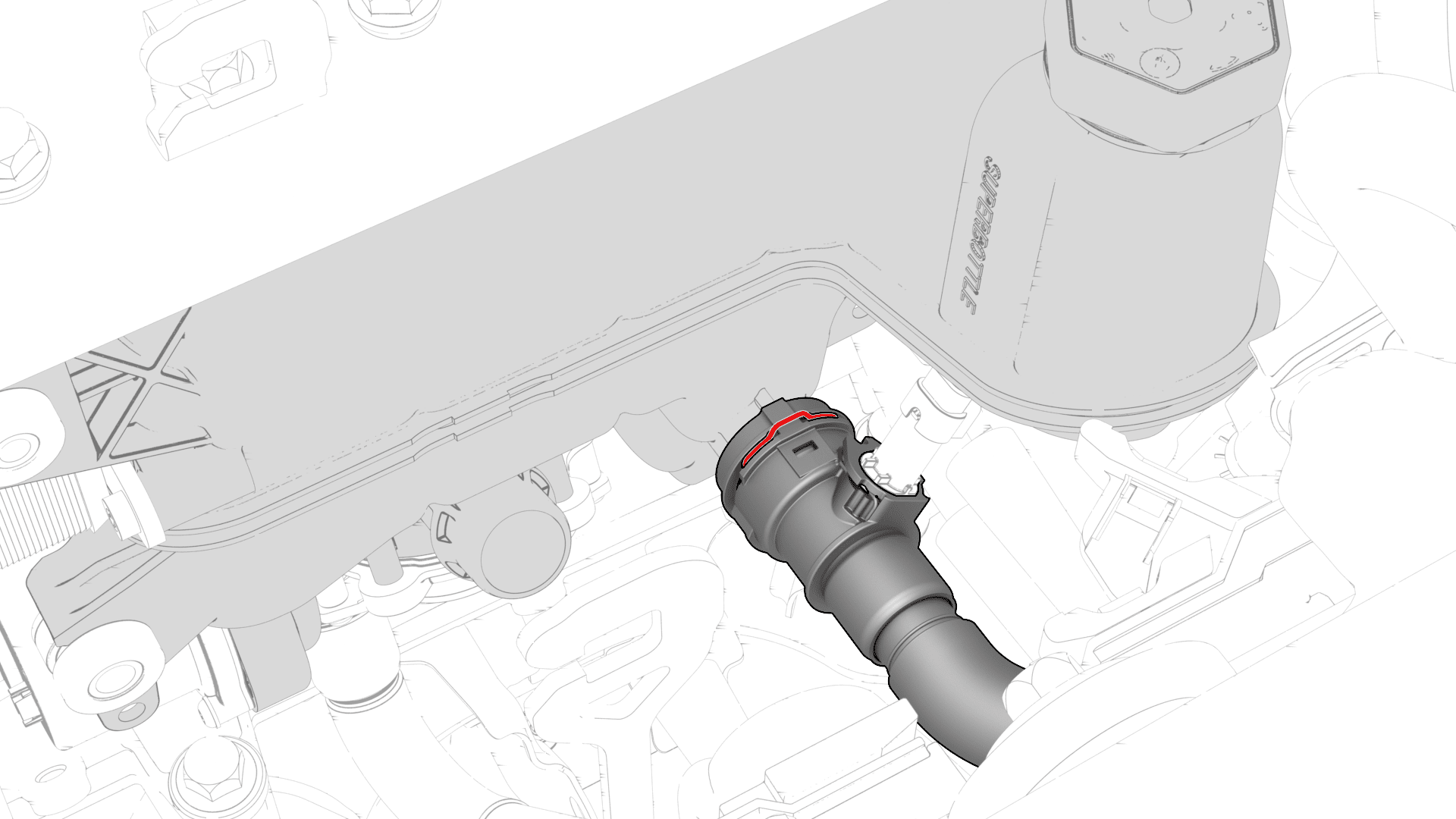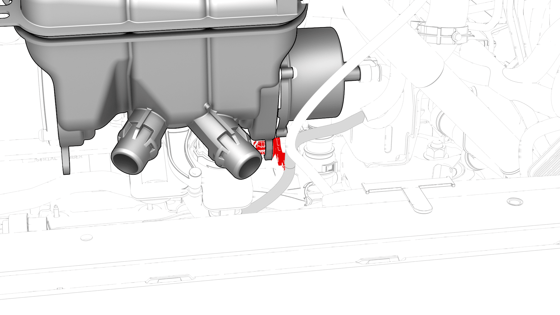 - 将散热器出口软管连接到超级瓶右前侧,然后安装卡子。