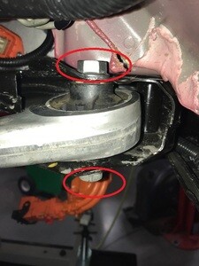 拆卸将左前下方柔性连杆固定到前副车架的螺栓和螺母