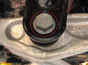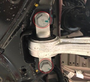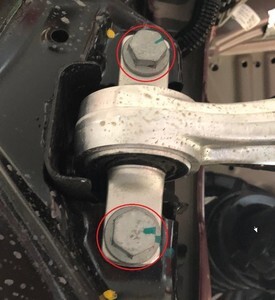 安装将左前下方柔性连杆固定到前副车架的螺栓和螺母