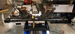 安装左前下方横向连杆,然后预装将左侧支柱固定到下方横向连杆的螺栓和螺母