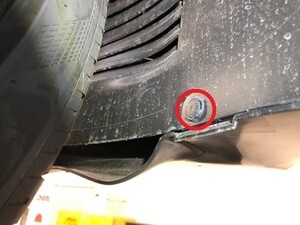 拆下将前裙板 LH 角固定到前饰板的螺母
