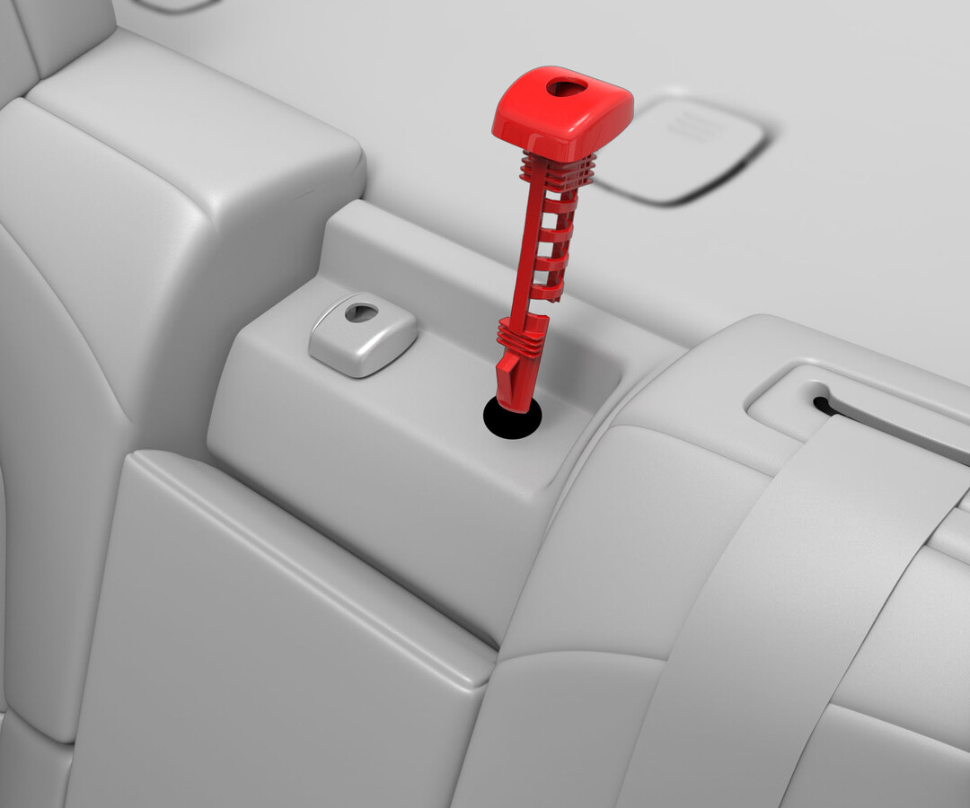 - 将导管锁完全插入座椅,使导管锁上的开口朝向车辆的 RH 侧。