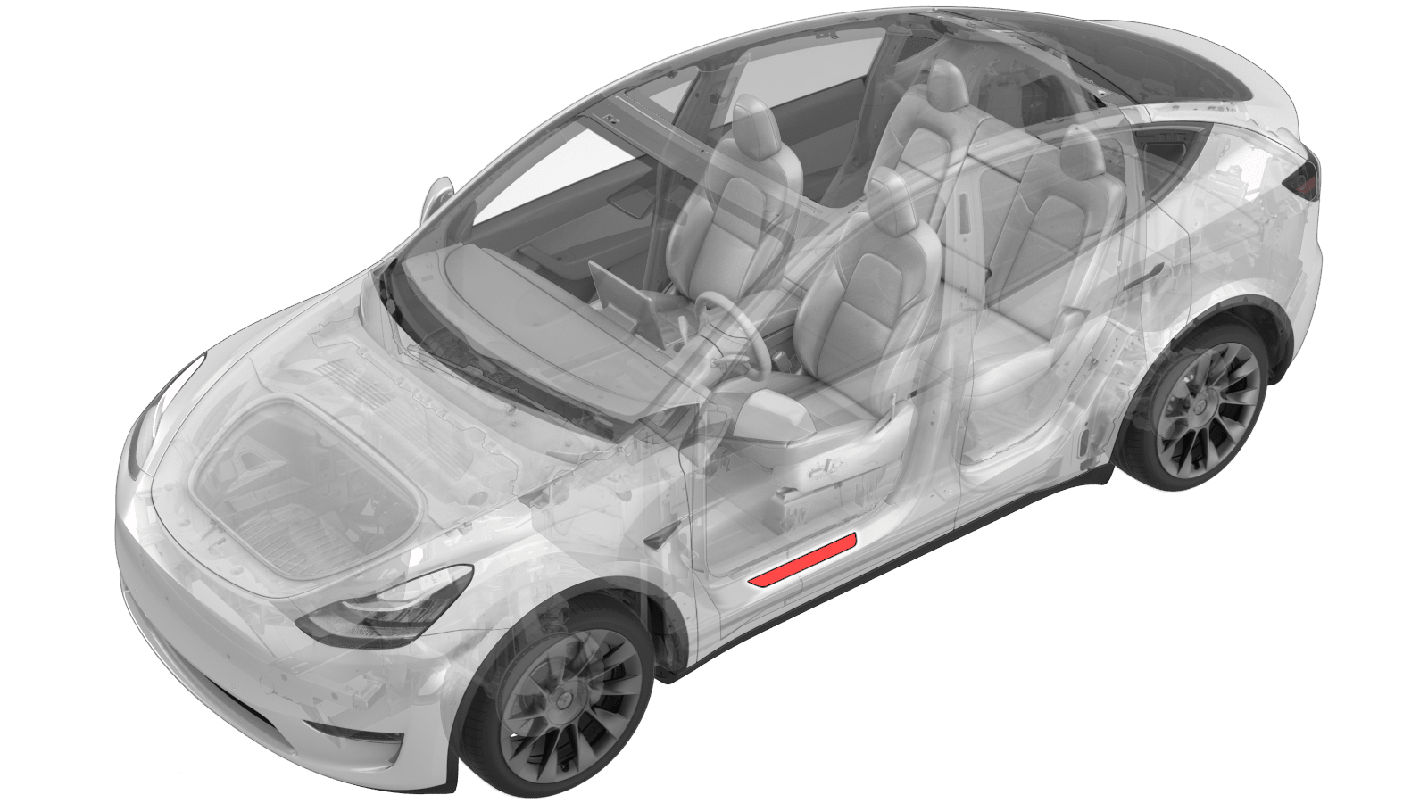 2. 将遮蔽胶带作为指引,将新门槛板稳妥放置入位,然后下压,使其粘贴在车上。
